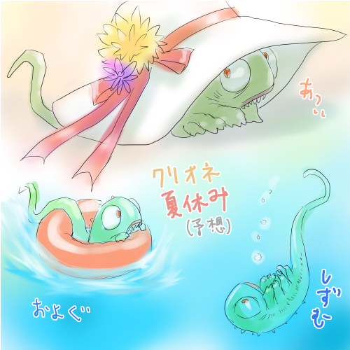 [PR] ×[PR]上記の広告は3ヶ月以上新規記事投稿のないブログに表示されています。新しい記事を書く事で広告が消えます。 クリオネ夏休み予想 いそがしくしてたら前の記事からあっさり一ヶ月経ってしまいました。病気の時よりブログ更新しないなんて何事…しごとって恐ろしいです。気がついたらほとんど夏だし。ということで先走って夏の妄想 クリオネエンビたんと夏のリゾートにいって帽子の陰に隠してあげたり、専用の浮き輪を買ってあげて喜ばせたり(そしておぼれかけるのを助けるのが遅れて噛みつかれたり)…ところであの生き物は水に浮くんでしょうかね?普通あの大きさの爬虫類なら浮きますけど、エンビたんは喉の奥の石の分だけ比重が重そうな気がするんですよねυ PR コメント コメントを書く コメントを書く コメント送信